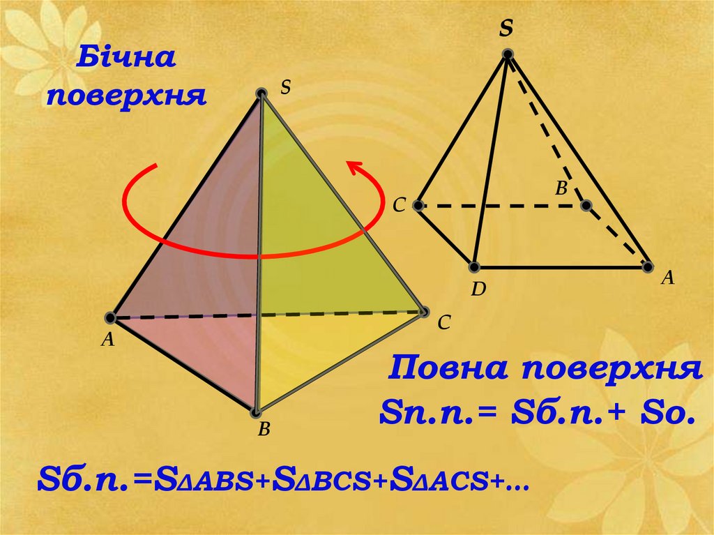 Sб.п.=SΔАВS+SΔBCS+SΔACS+…