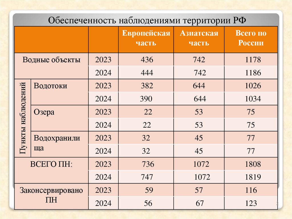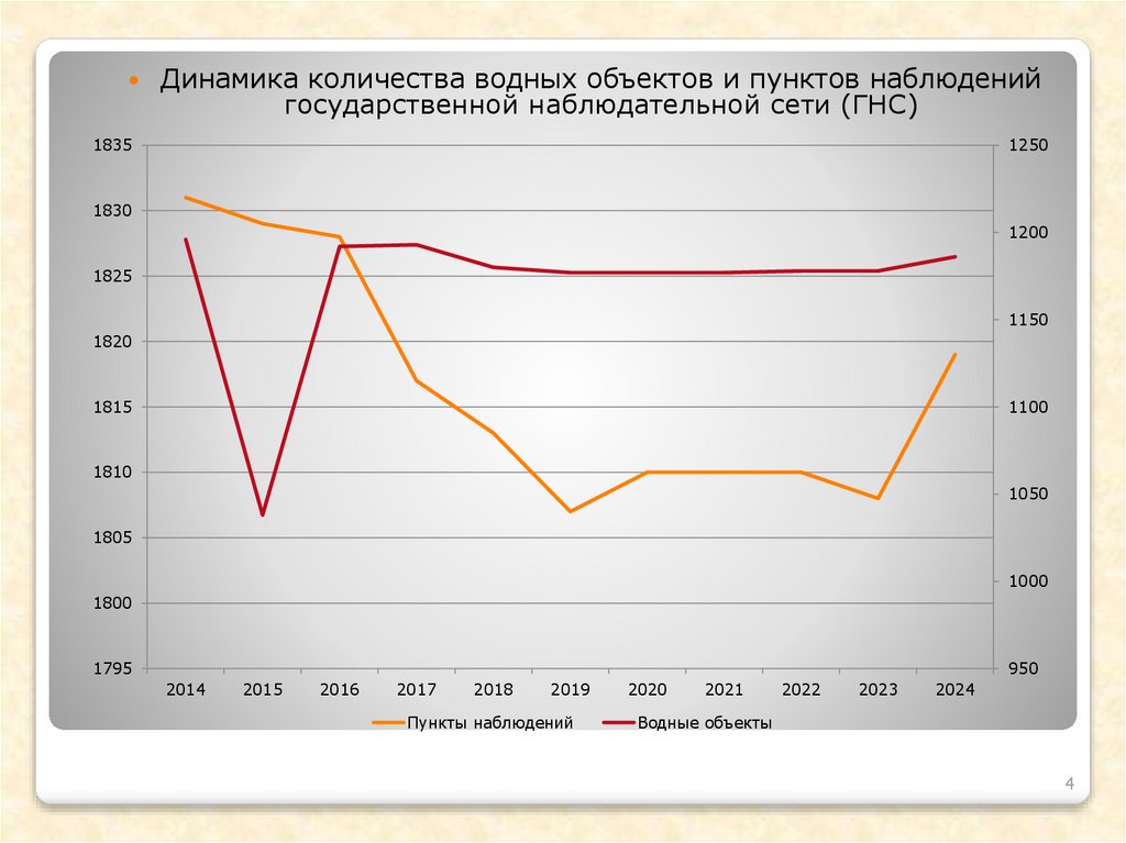 Динамика количества водных объектов и пунктов наблюденийгосударственной наблюдательной сети (ГНС)