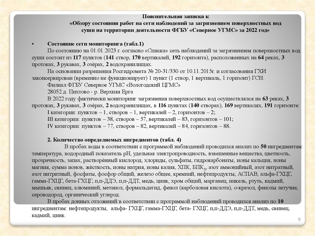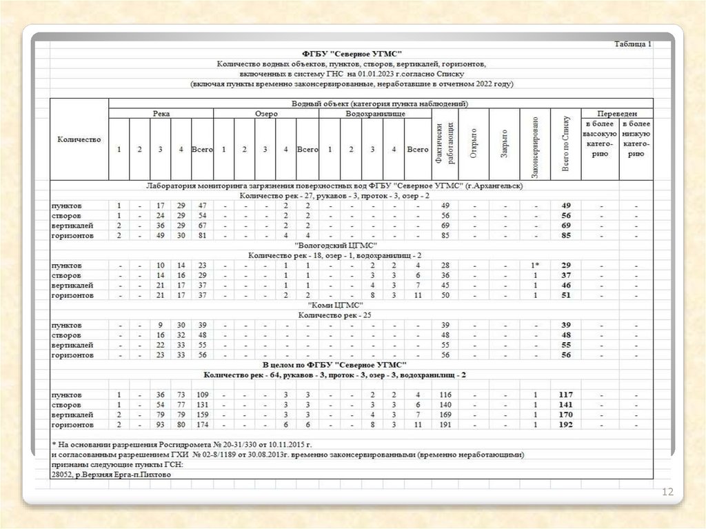 Анализ работы сети наблюдений иматериалов УГМС, представленных в