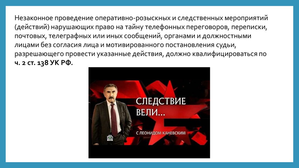 Незаконное проведение оперативно-розыскных и следственных мероприятий(действий) нарушающих право на тайну телефонных переговоров, переписки,
