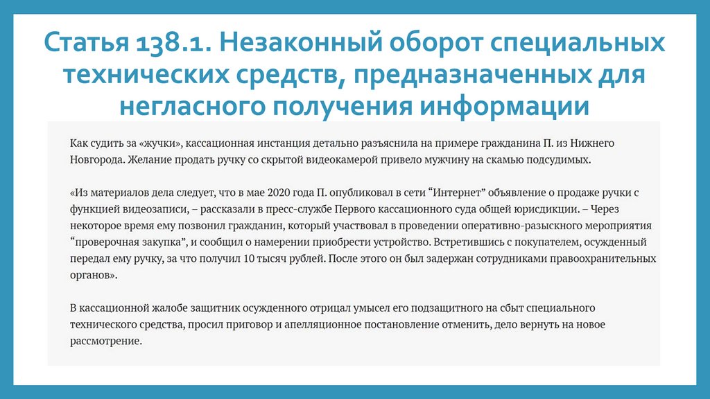Статья 138.1. Незаконный оборот специальныхтехнических средств, предназначенных для