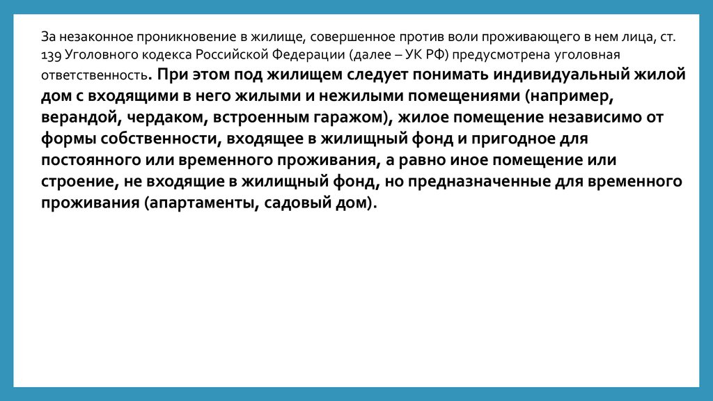ответственность. При этом под жилищем следует понимать индивидуальный жилой