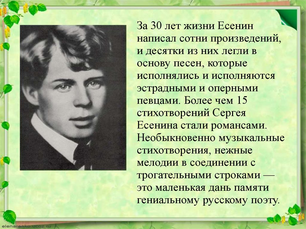 В 19 лет появилось в печати первоестихотворение Есенина «Берёза»