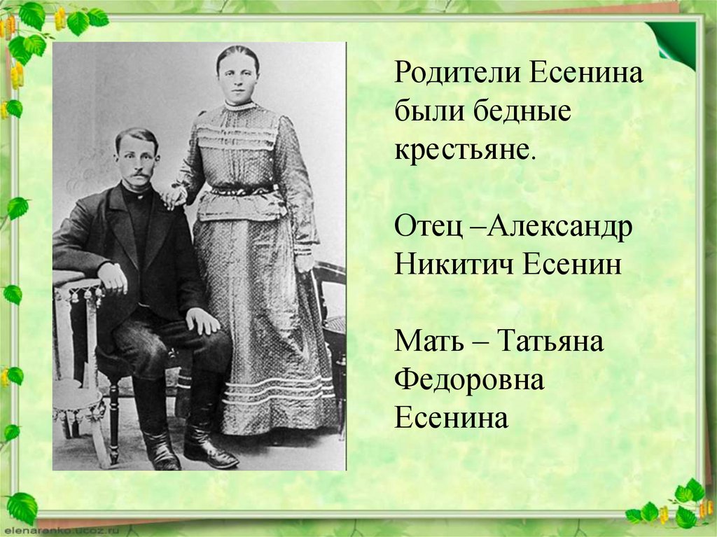 Сергей Александрович Есенин родился вРязанской губернии, в селе Константиново