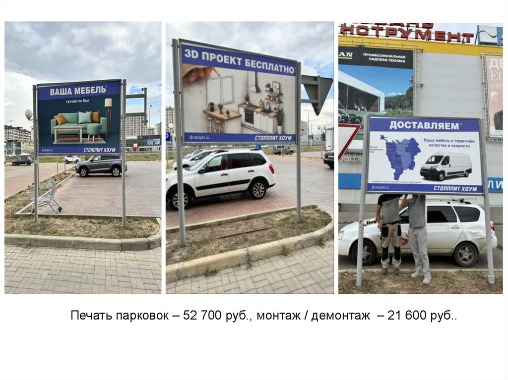 Печать парковок – 52 700 руб., монтаж / демонтаж – 21 600 руб..18.
