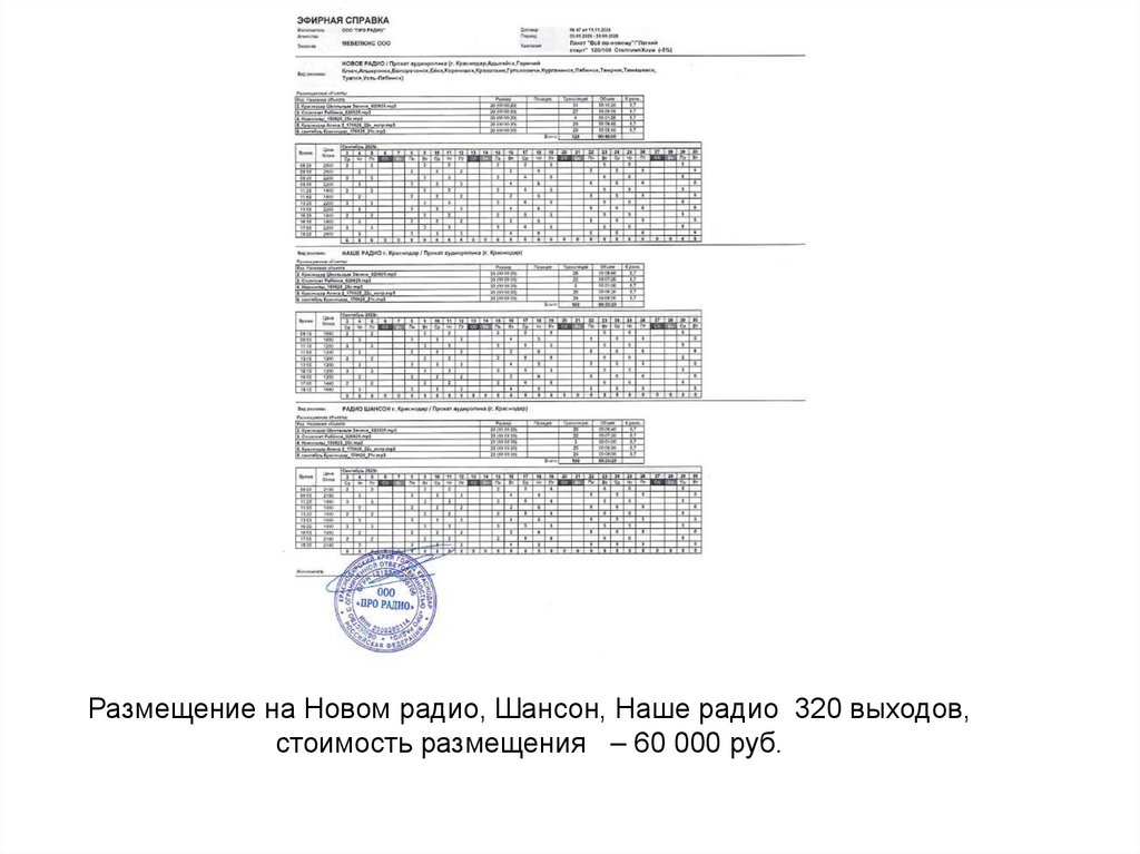 Размещение на Новом радио, Шансон, Наше радио 320 выходов,стоимость размещения – 60 000 руб.