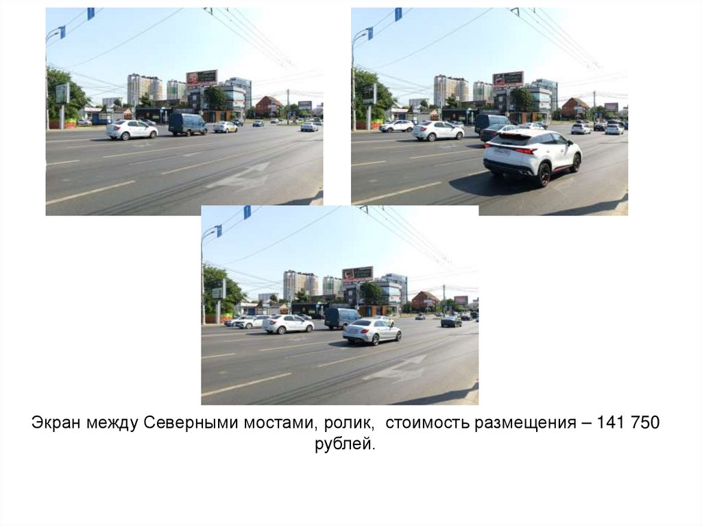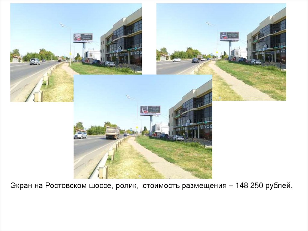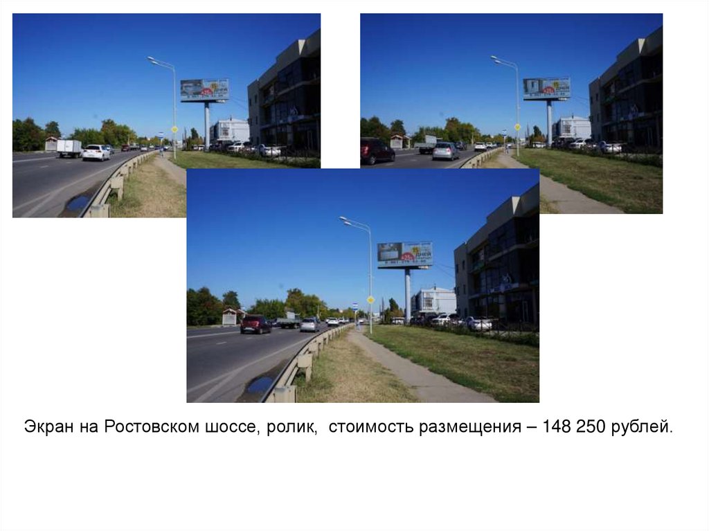 Экран на Ростовском шоссе, ролик, стоимость размещения – 148 250 рублей.8.