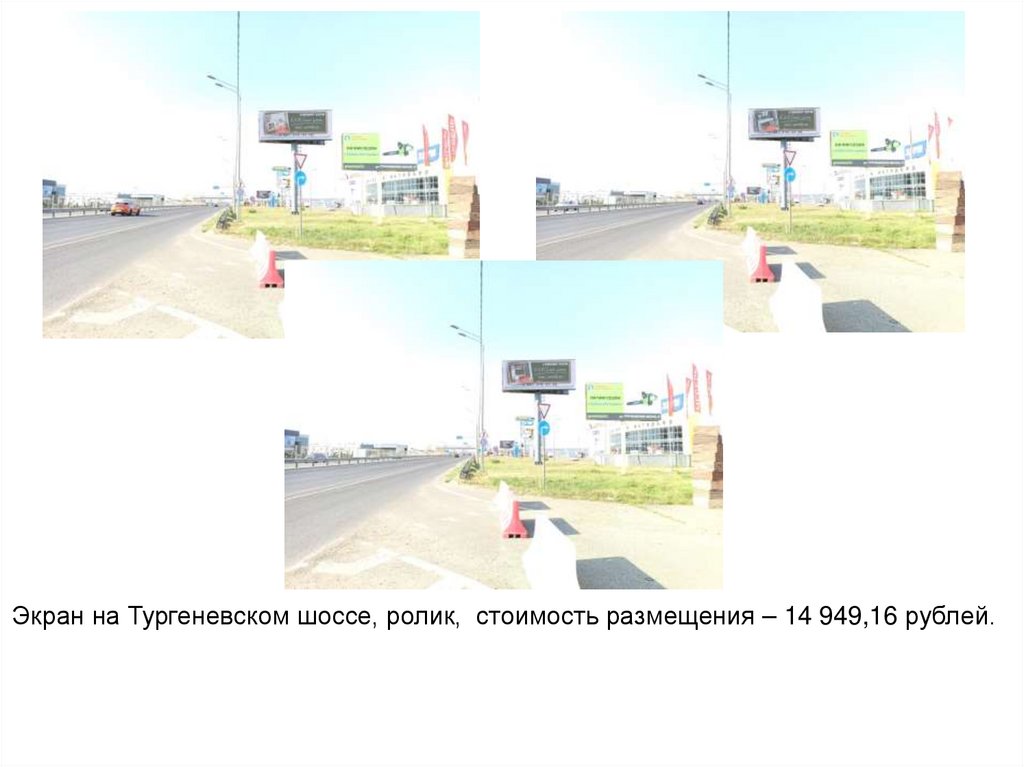 Экран на Тургеневском шоссе, ролик, стоимость размещения – 14 949,16 рублей.10.