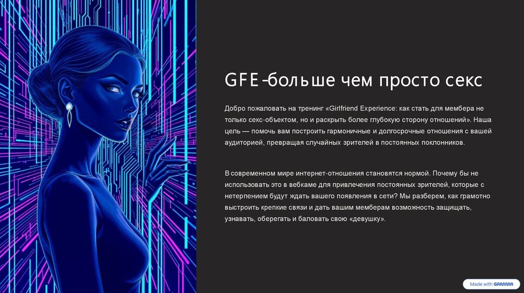 GF E -бол ь ше чем просто сексДобро пожаловать на тренинг «Girlfriend Experience: как стать для мембера не
