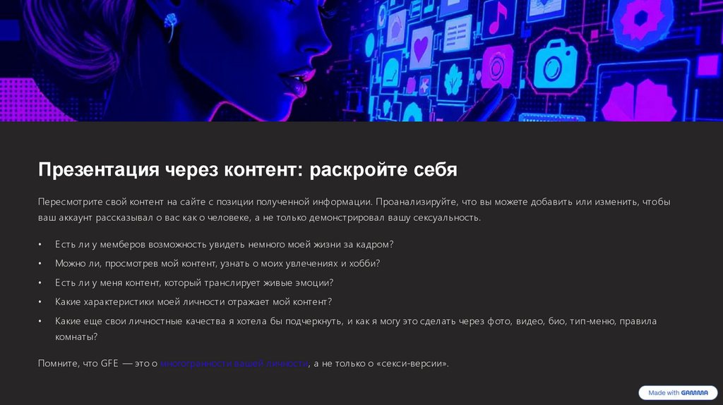 Цель GFE — выйти за рамки обычного контента и предложить нечто