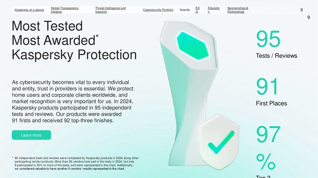 * 95 independent tests and reviews were completed by Kaspersky products in 2024 along other