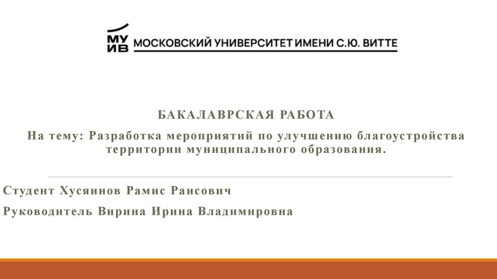 БАКАЛАВРСКАЯ РАБОТАНа тему: Разработка мероприятий по улучшению благоустройства