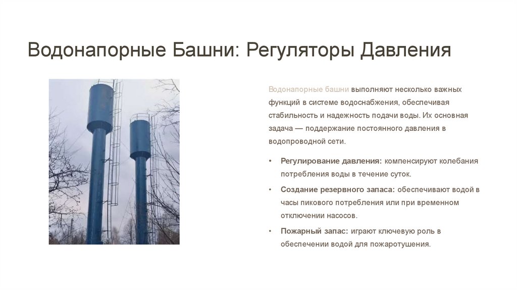 Водонапорные Башни: Регуляторы ДавленияВодонапорные башни выполняют несколько важных
