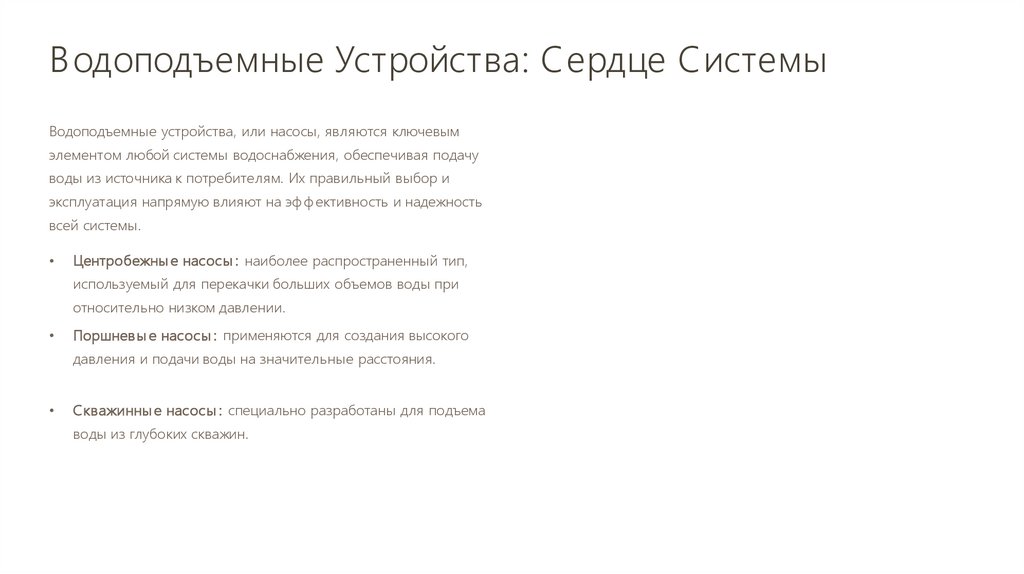 Водоподъемные Устройства: Сердце СистемыВодоподъемные устройства, или насосы, являются ключевым