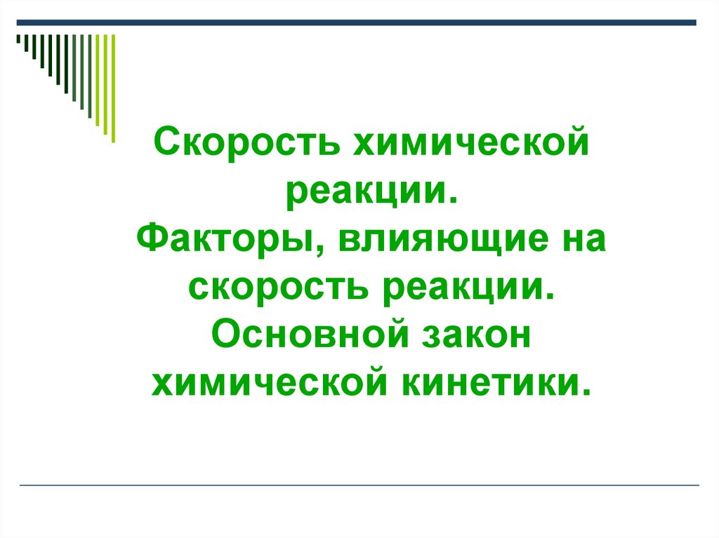 1. Скорость химической реакции. Факторы, влияющие на скорость реакции. Основной закон химической кинетики.