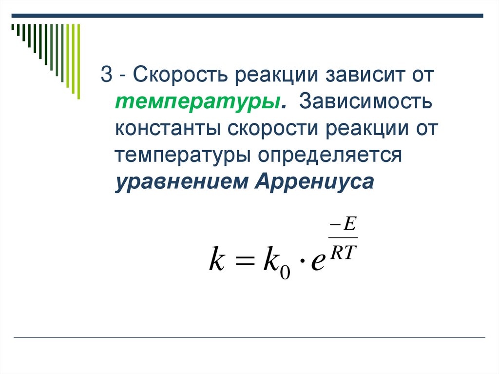 3 - Скорость реакции зависит оттемпературы. Зависимость