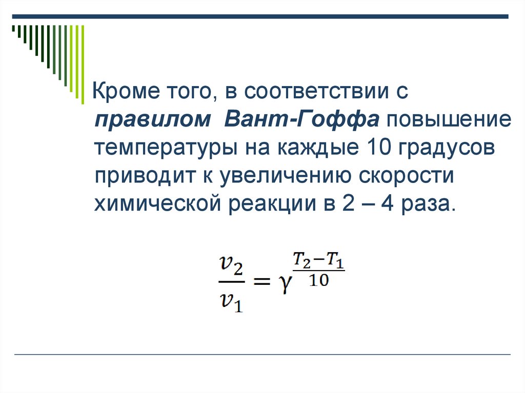 Кроме того, в соответствии справилом Вант-Гоффа повышение