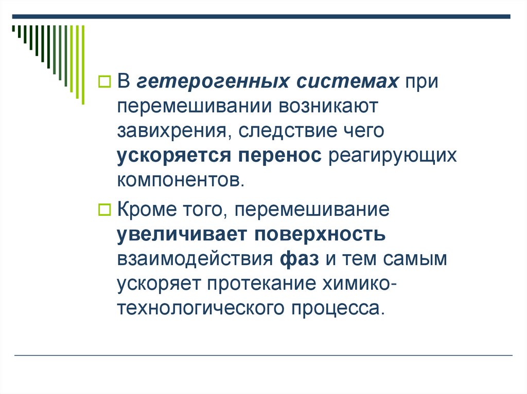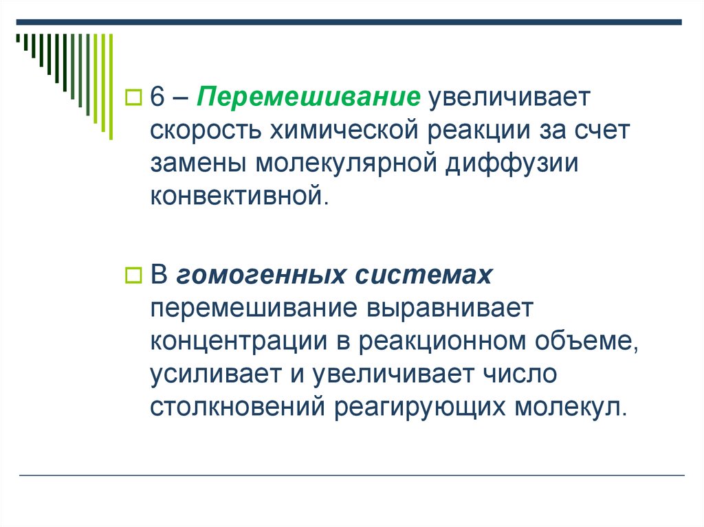 6 – Перемешивание увеличиваетскорость химической реакции за счет