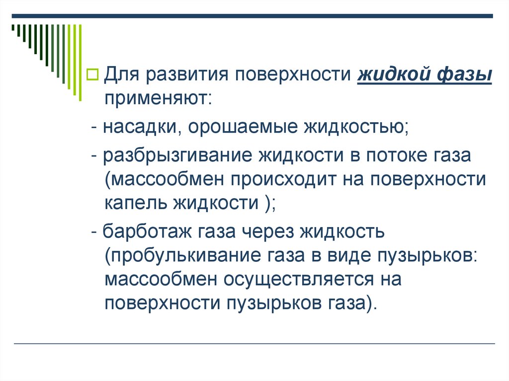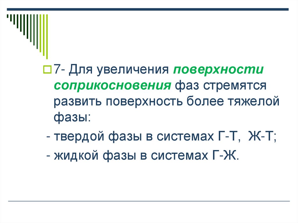7- Для увеличения поверхностисоприкосновения фаз стремятся