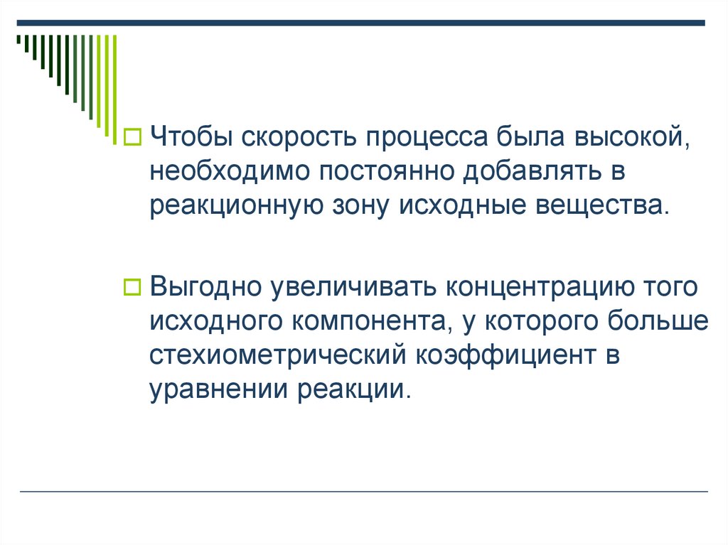 Чтобы скорость процесса была высокой,необходимо постоянно добавлять в