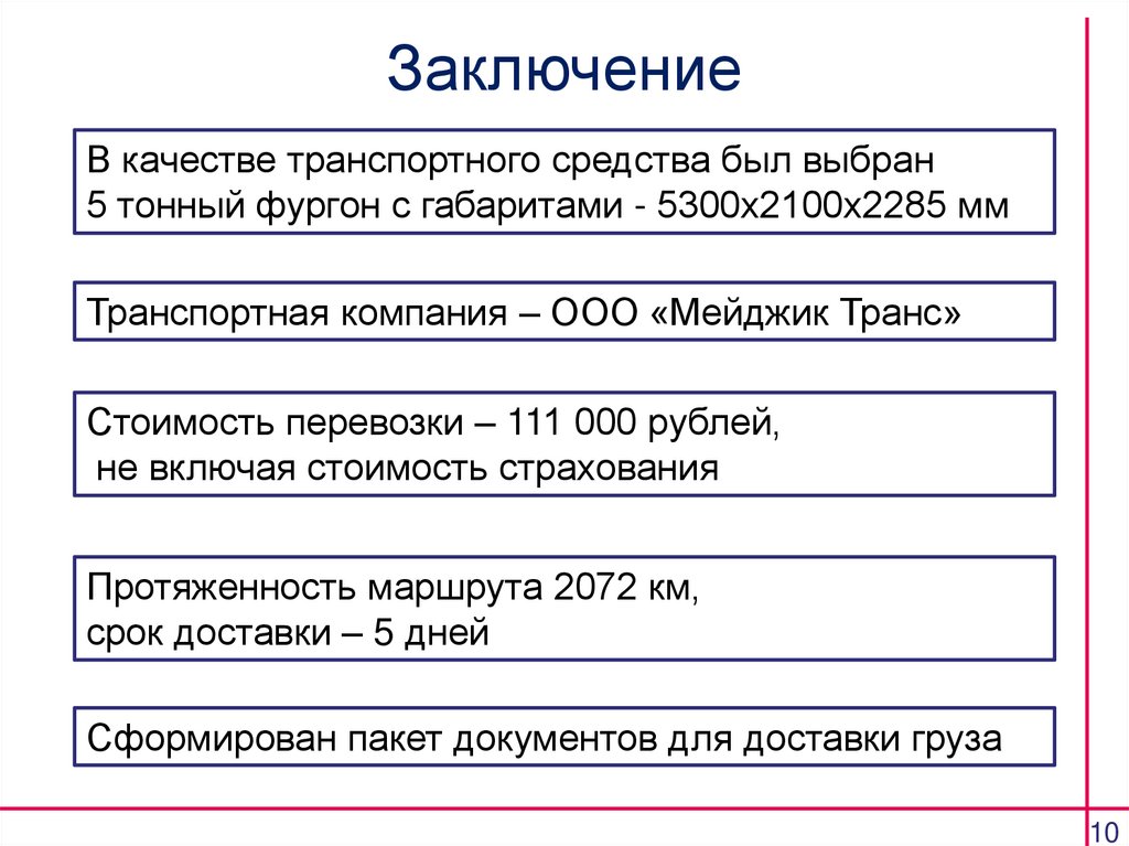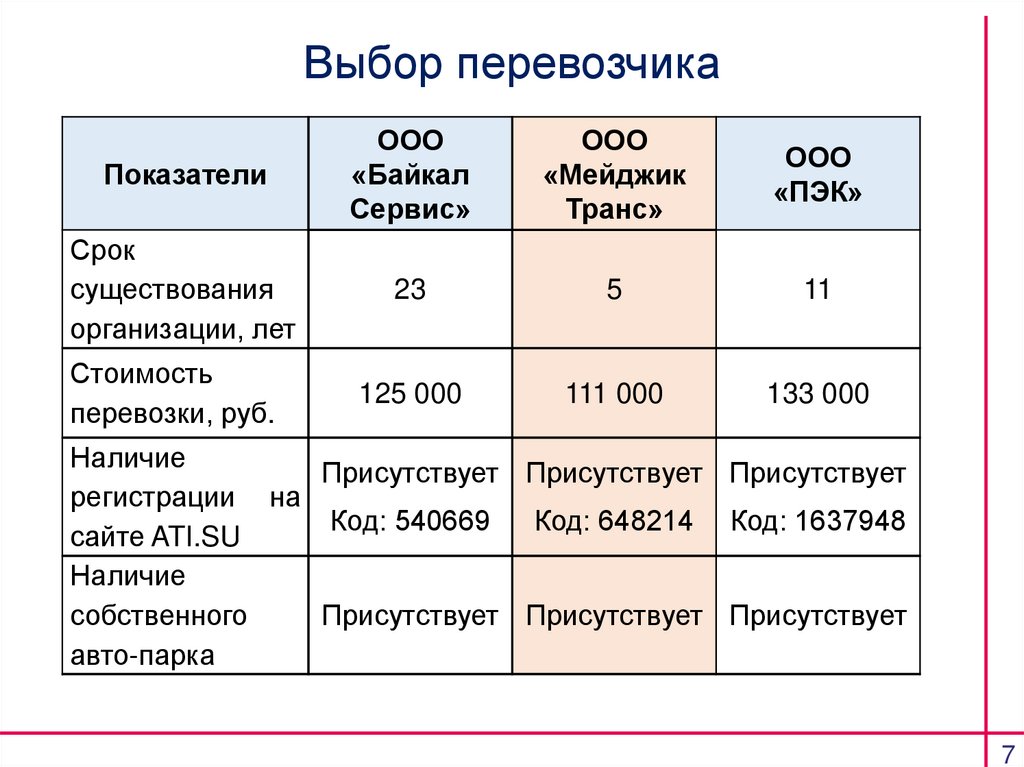 2. Выбор перевозчика и расчёт стоимости перевозки