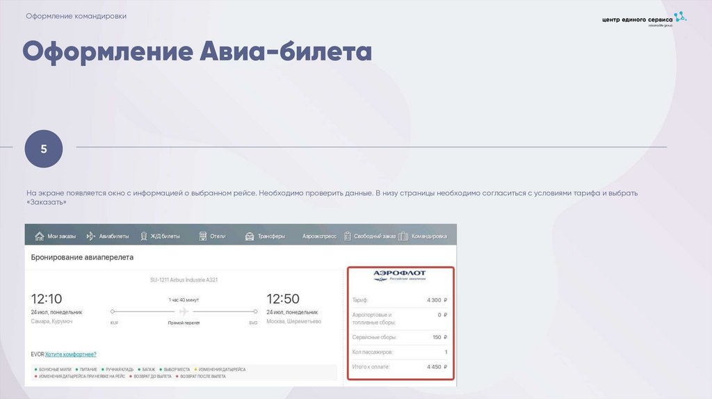 Необходимо выбрать подходящий вариант билета согласно Travel-политике. Далее