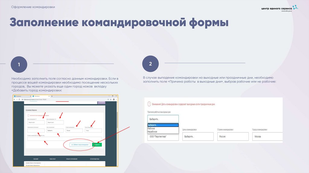 Предоставление возможности оформления командировки на другого сотрудника, оформления