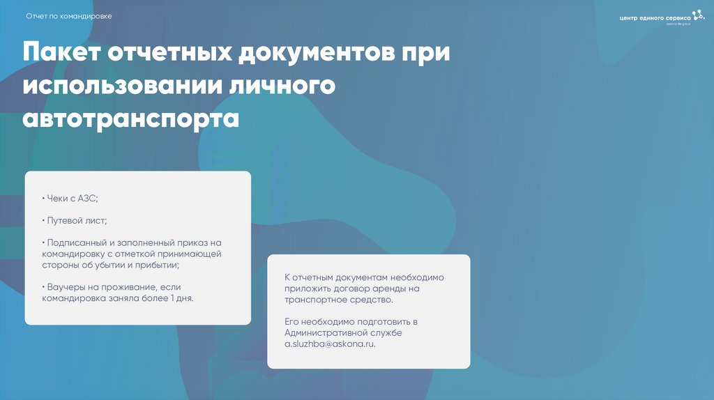 бумажных документа, к примеру «Отчет о поездке» и «Путевой лист».