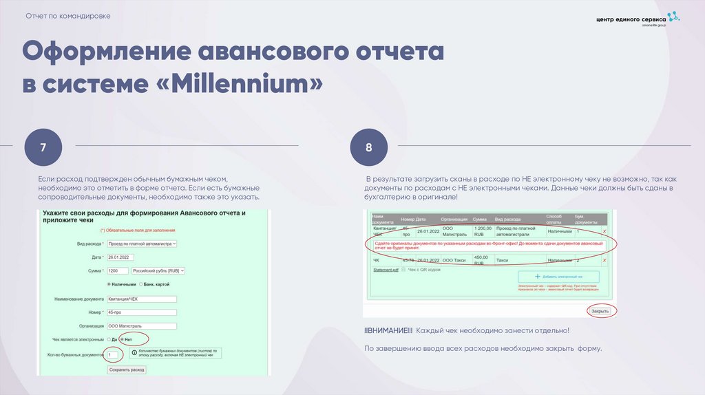 документы по расходам с НЕ электронными чеками. Данные чеки должны быть сданы в