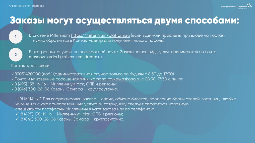 Оформление командировкиЗаказы могут осуществляться двумя способами: