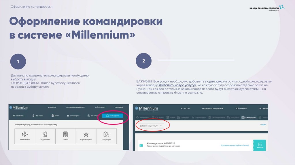 ВАЖНО!!!!!!! Все услуги необходимо добавлять в один заказ (в рамках одной командировки)