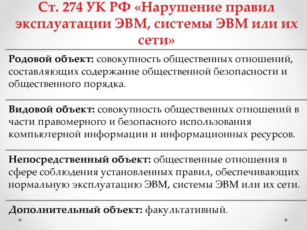 Непосредственный объект - общественные отношенияпо обеспечению безопасности компьютерной