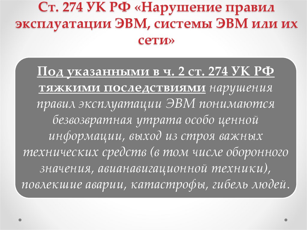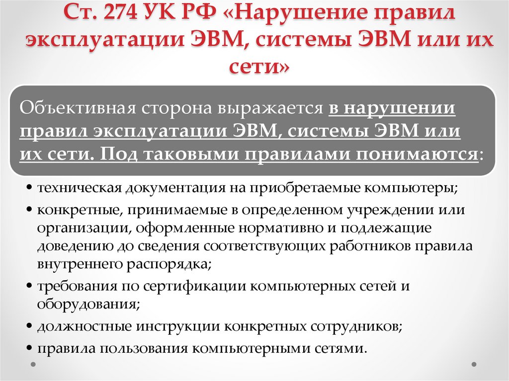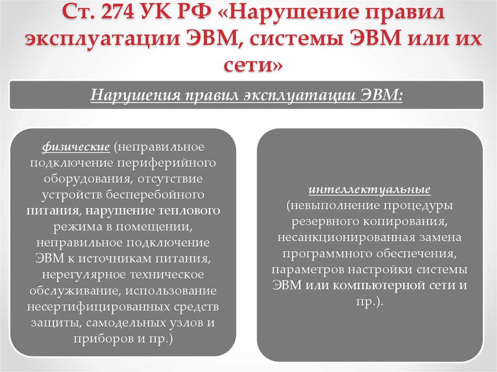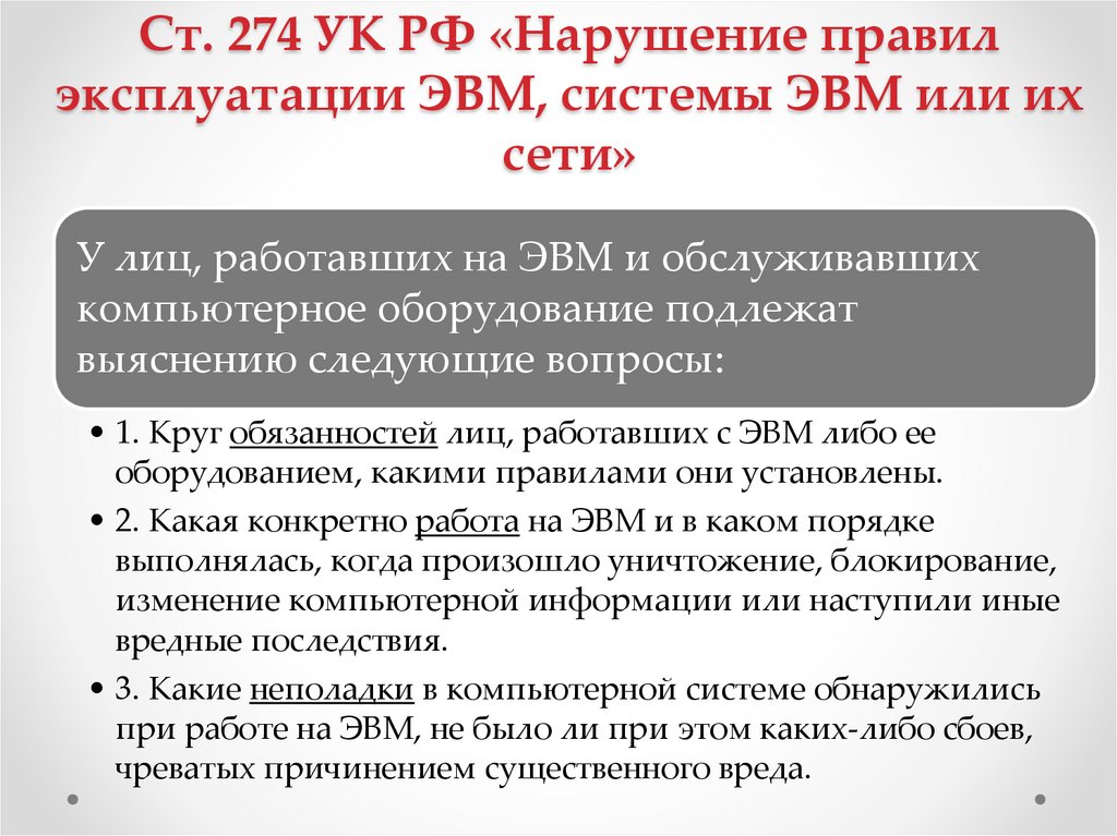 ст. 274. Нарушение правил эксплуатации ЭВМ,