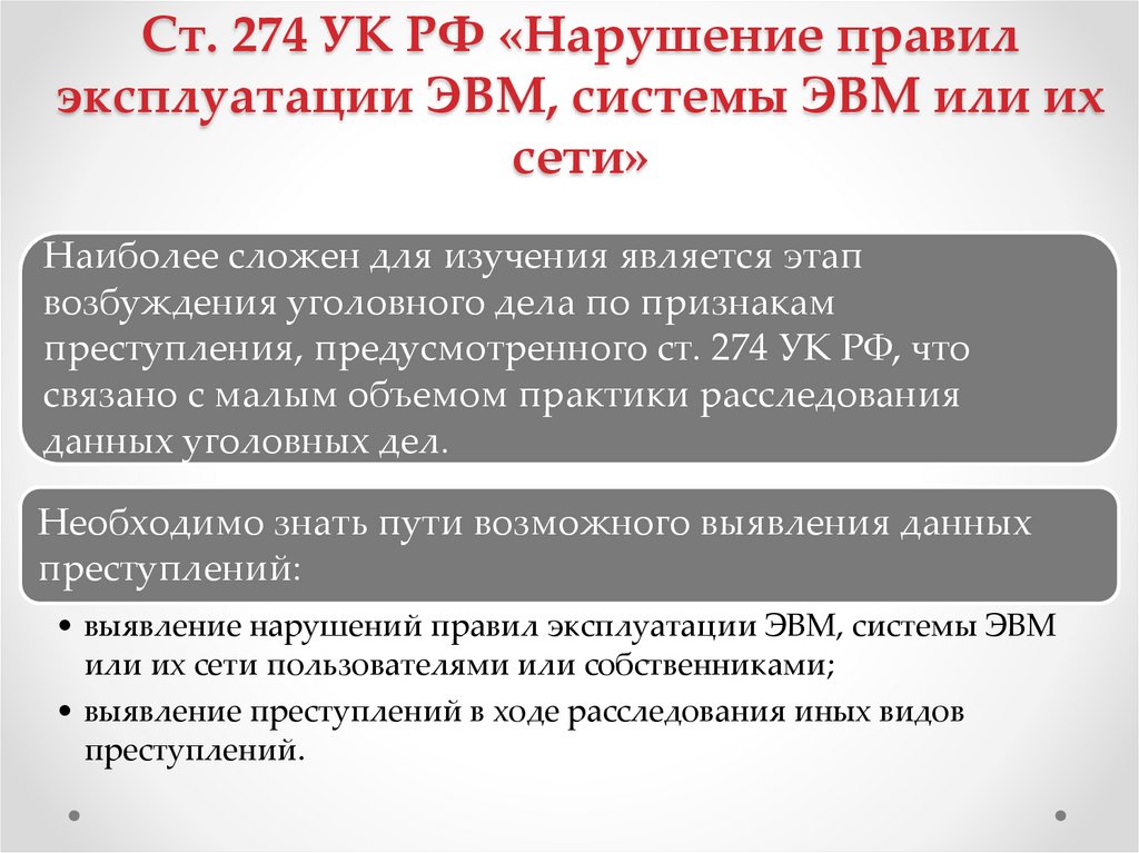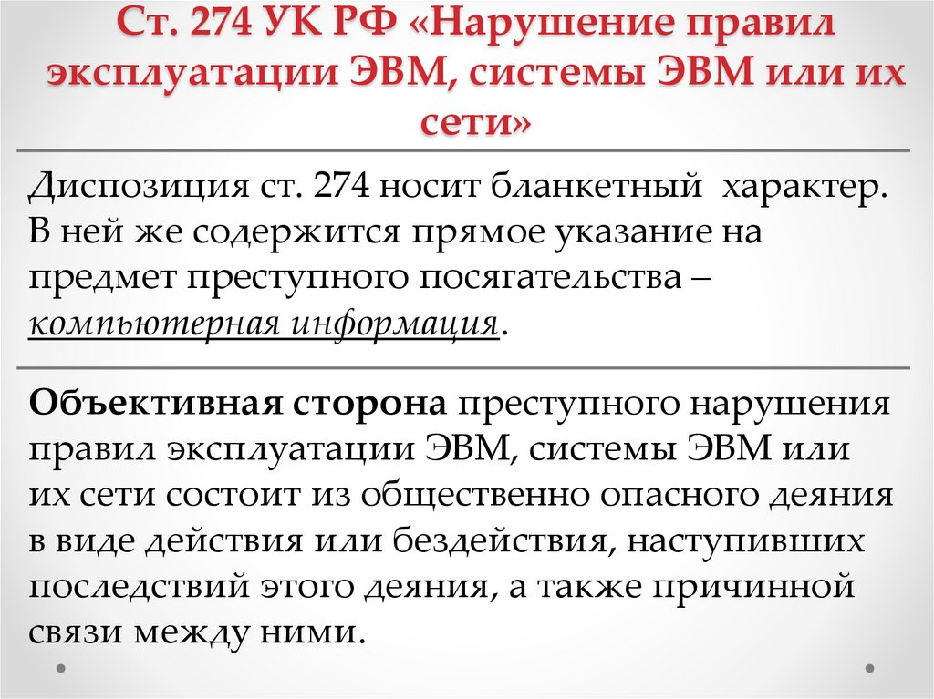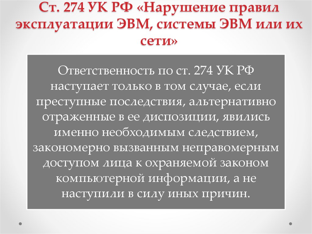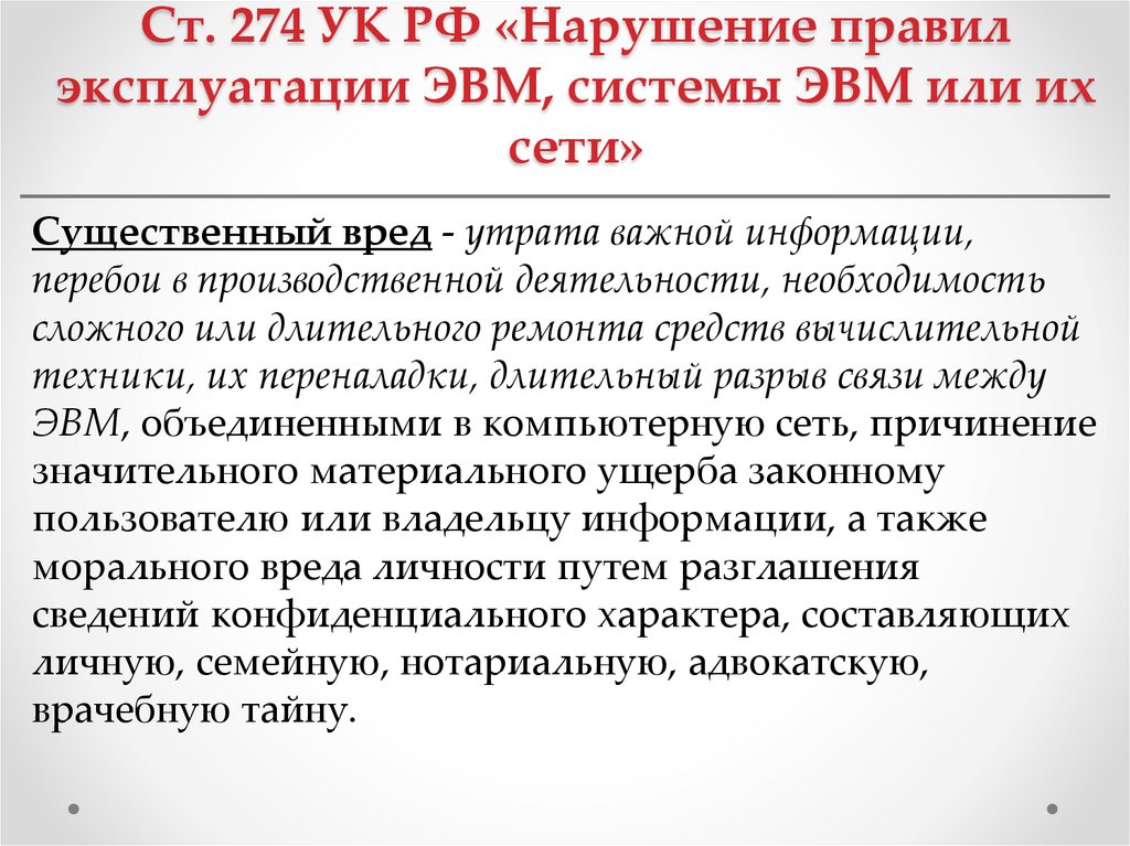 ст. 274. Нарушение правил эксплуатации ЭВМ,