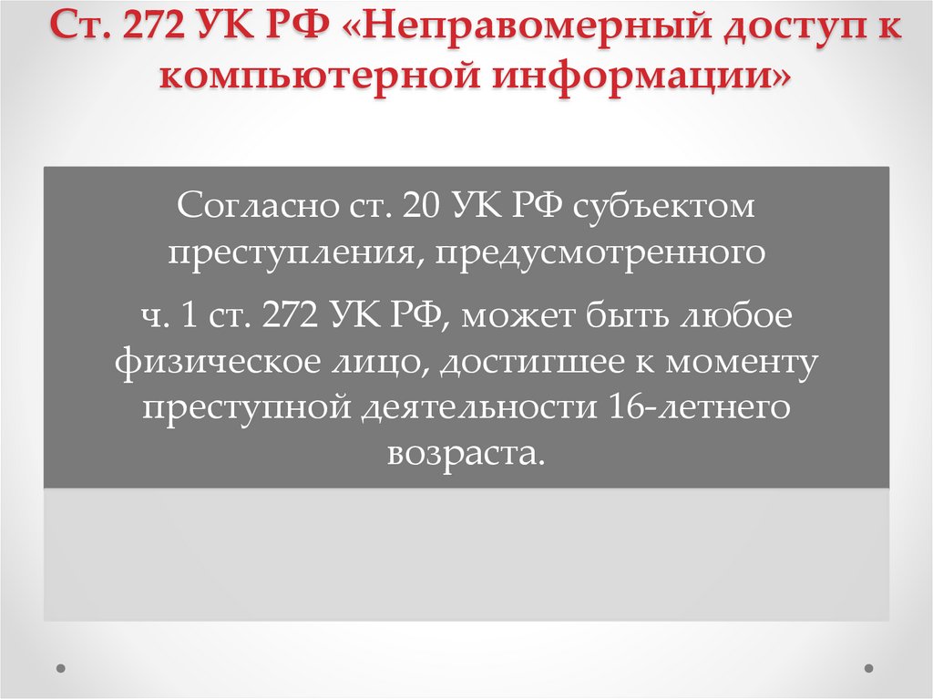 3. Ст. 272 УК РФ «Неправомерный доступ к компьютерной информации»
