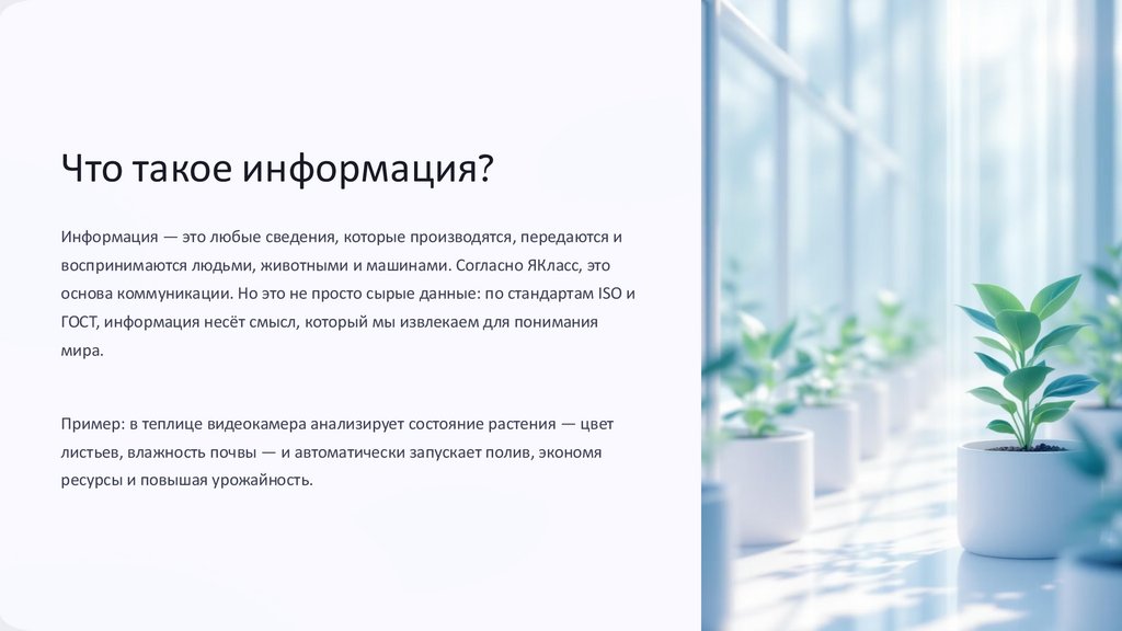 Пример: в теплице видеокамера анализирует состояние растения — цвет