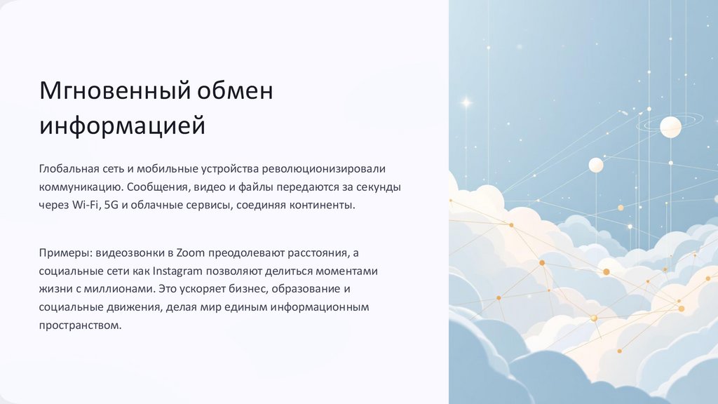 через Wi-Fi, 5G и облачные сервисы, соединяя континенты.