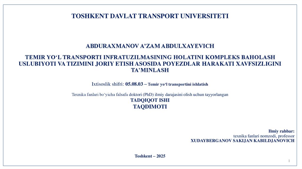 TOSHKENT DAVLAT TRANSPORT UNIVERSITETIABDURAXMANOV A’ZAM ABDULXAYEVICH