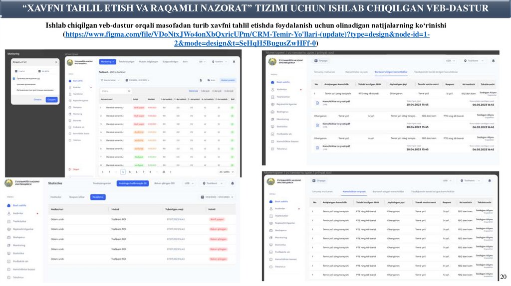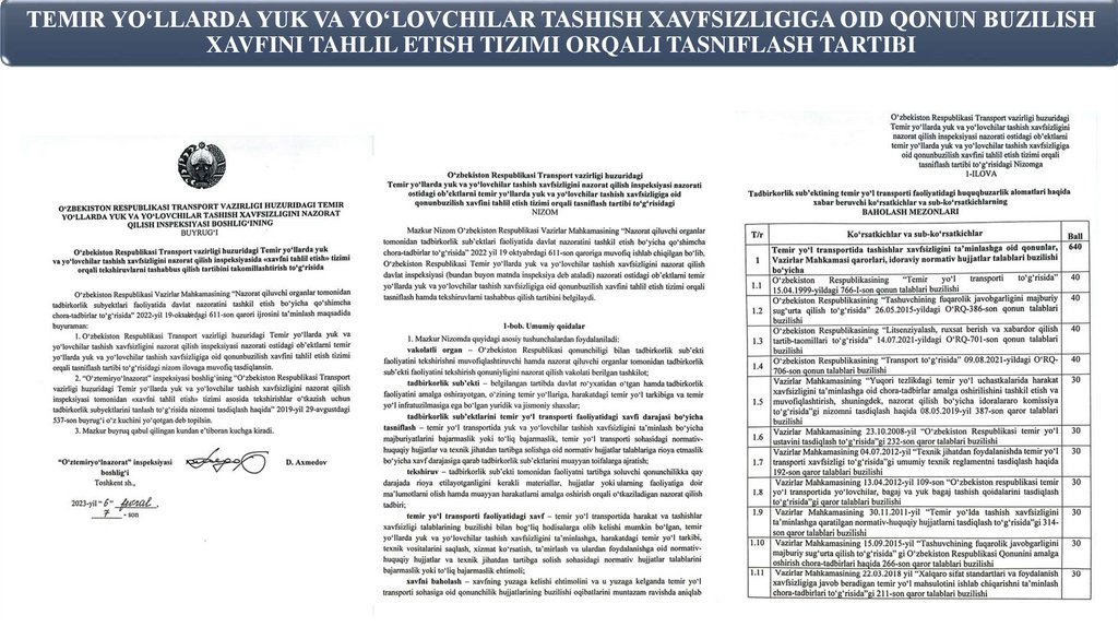 xavfini tahlil etish tizimi orqali tasniflash tartibi to‘g‘risida”gi Nizom ishlab chiqilgan (2023yil 06-fevraldagi Transport nazorati inspeksiyasi 7-son buyrug‘i);