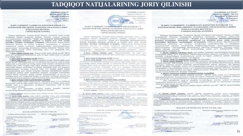 TADQIQOT NATIJALARINING JORIY QILINISHI33