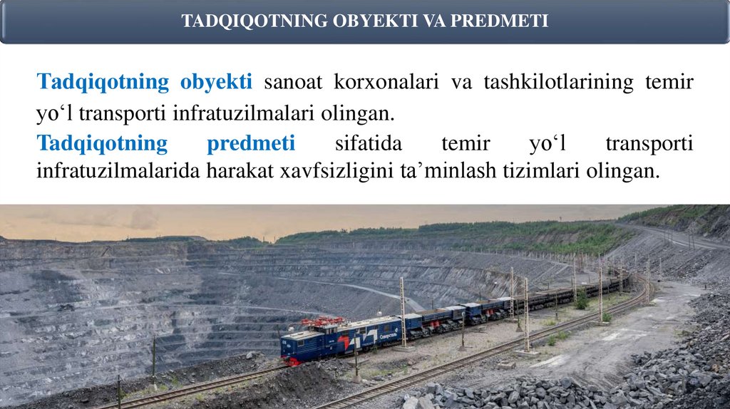 TADQIQOTNING OBYEKTI VA PREDMETIТаdqiqotning obyekti sanoat korxonalari va tashkilotlarining temir
