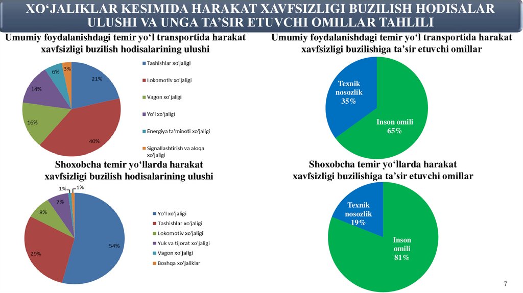 • temir yо‘l transportida harakat va tashishlar xavfsizligi talablarining buzilishlarini hisobga