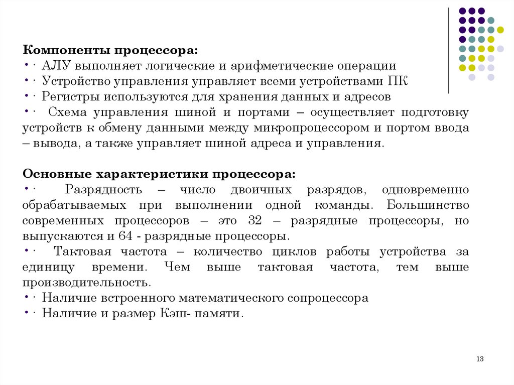 Ядро ПК образуют процессор (центральный микропроцессор) и основная