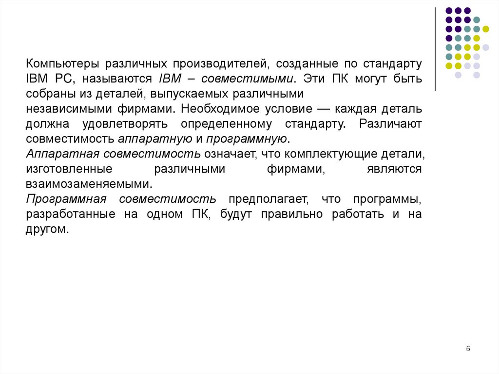 Компьютеры различных производителей, созданные по стандартуIВМ PC, называются IВМ – совместимыми. Эти ПК могут быть