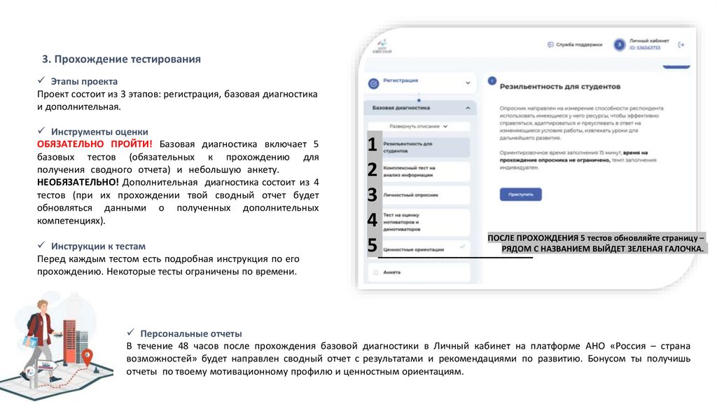 В течение 48 часов после прохождения базовой диагностики в Личный кабинет на платформе АНО «Россия – страна