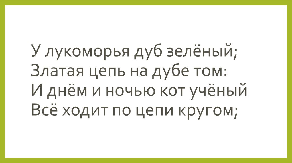 У лукоморья дуб зелёный;Златая цепь на дубе том: