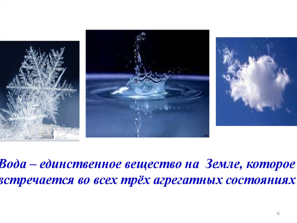 Вода – единственное вещество на Земле, котороевстречается во всех трёх агрегатных состояниях