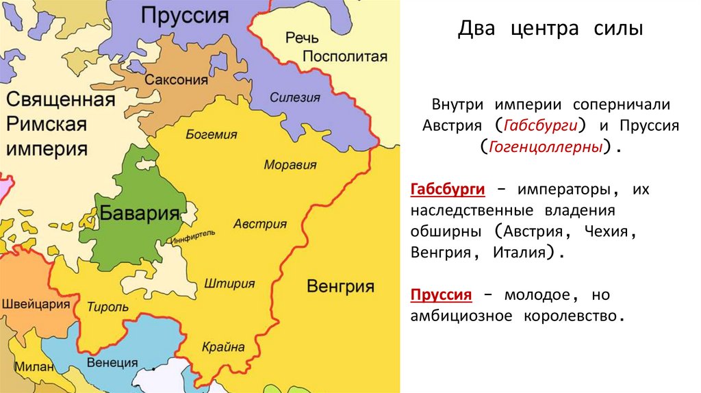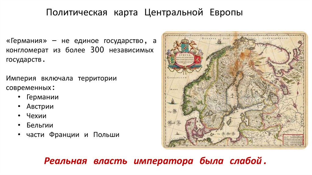 Политическая карта Центральной Европы«Германия» — не единое государство, а