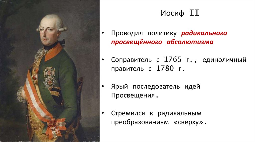 Иосиф II• Проводил политику радикального
