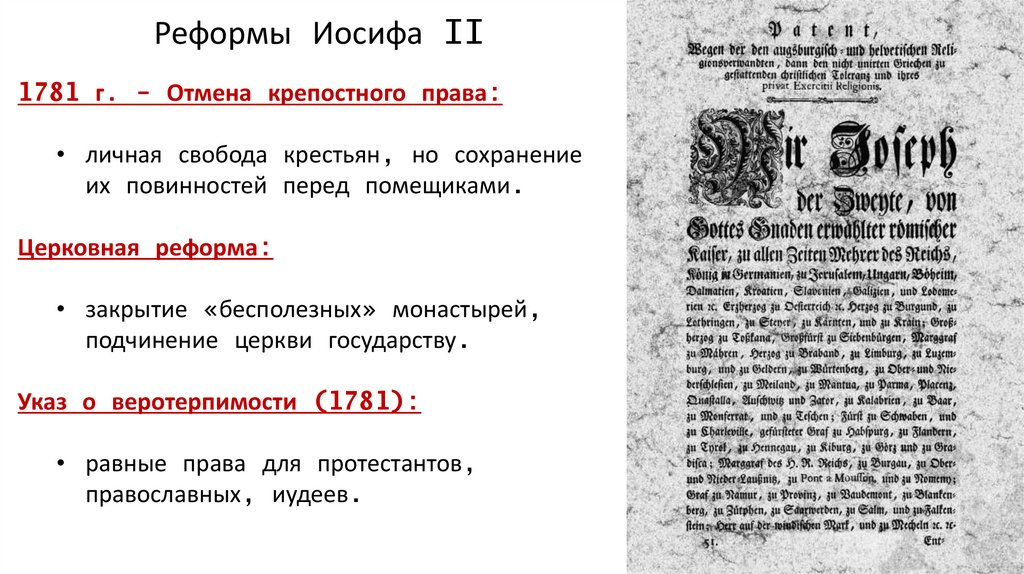 Реформы Иосифа II1781 г. - Отмена крепостного права: